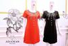 Váy cao cấp ADAMAS Đỏ cổ nơ đính đá tay ngắn